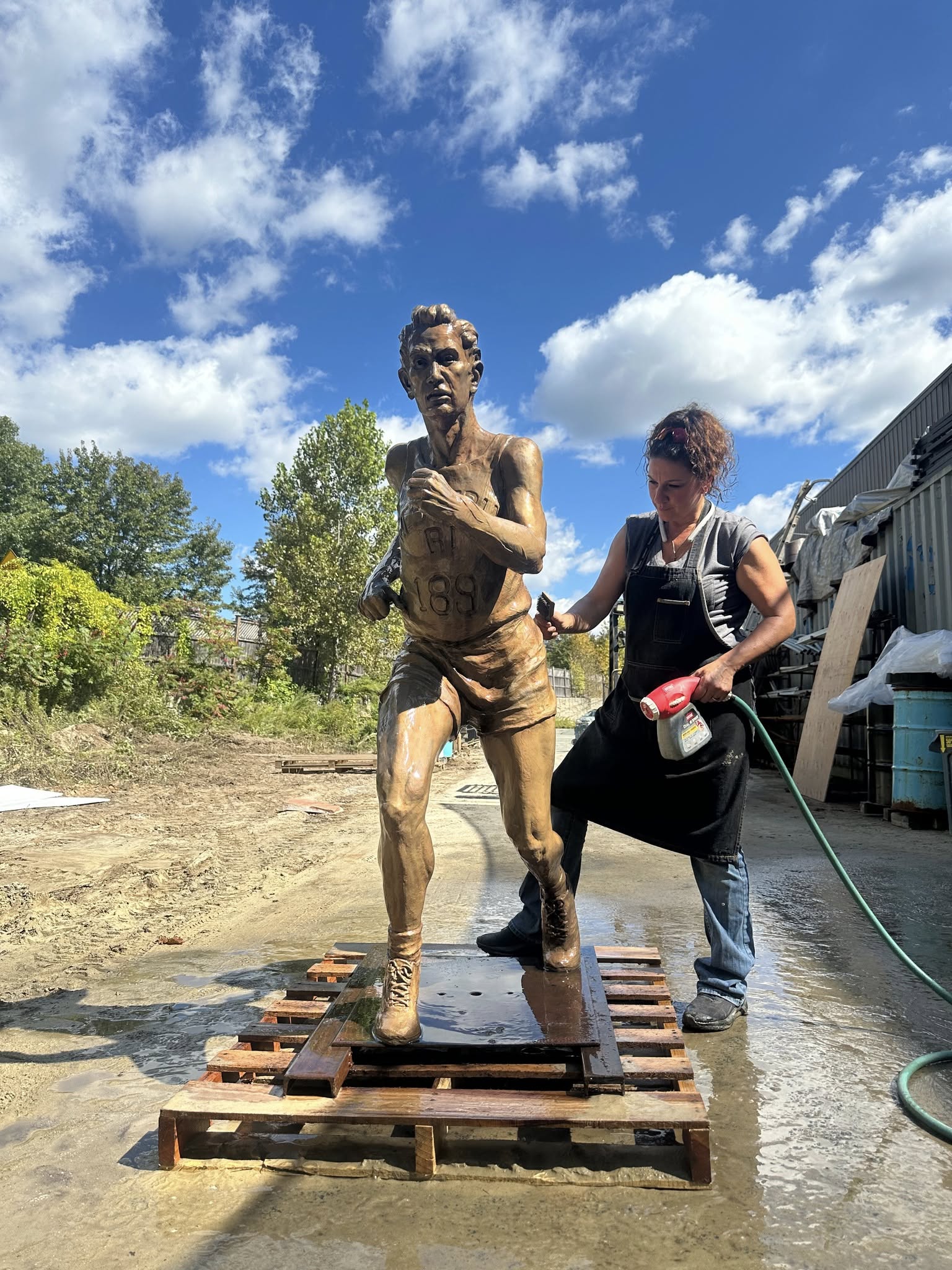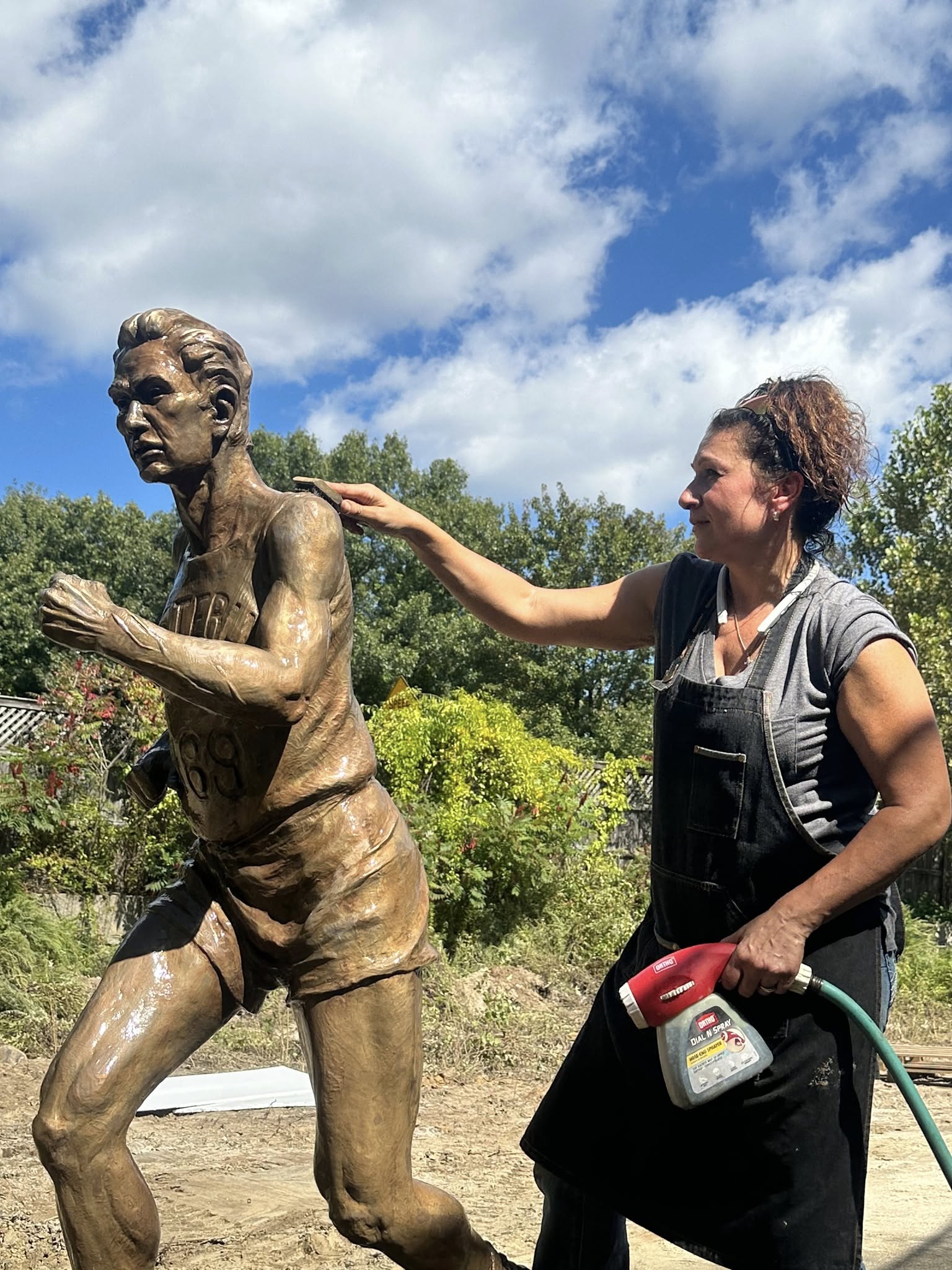 My artistic process began with extensive research into Tarzan Brown's life and athletic career, as well as the history of the Narragansett Indian Tribe. I worked closely with tribal leaders and community members to ensure the piece respectfully and accurately represents Brown and his heritage. Their insights were invaluable, guiding the design and ensuring the final sculpture resonated with the community it honors.