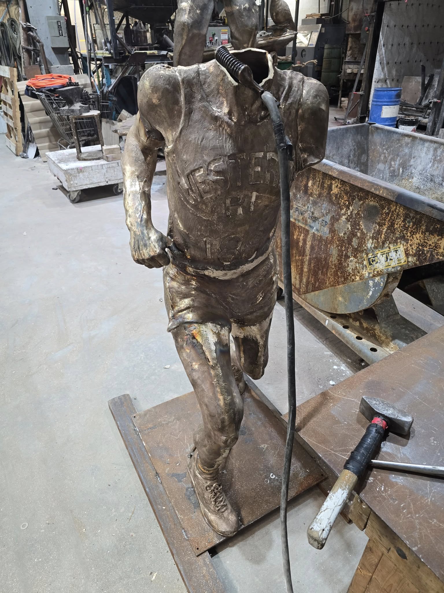 The sculpture was first created in a smaller clay model, allowing me to refine the pose and details. From there, it was scaled up and cast in bronze, a durable and timeless material that will stand for generations. This project was a true collaboration, and I am honored to have been entrusted with bringing this important story to life in bronze.
