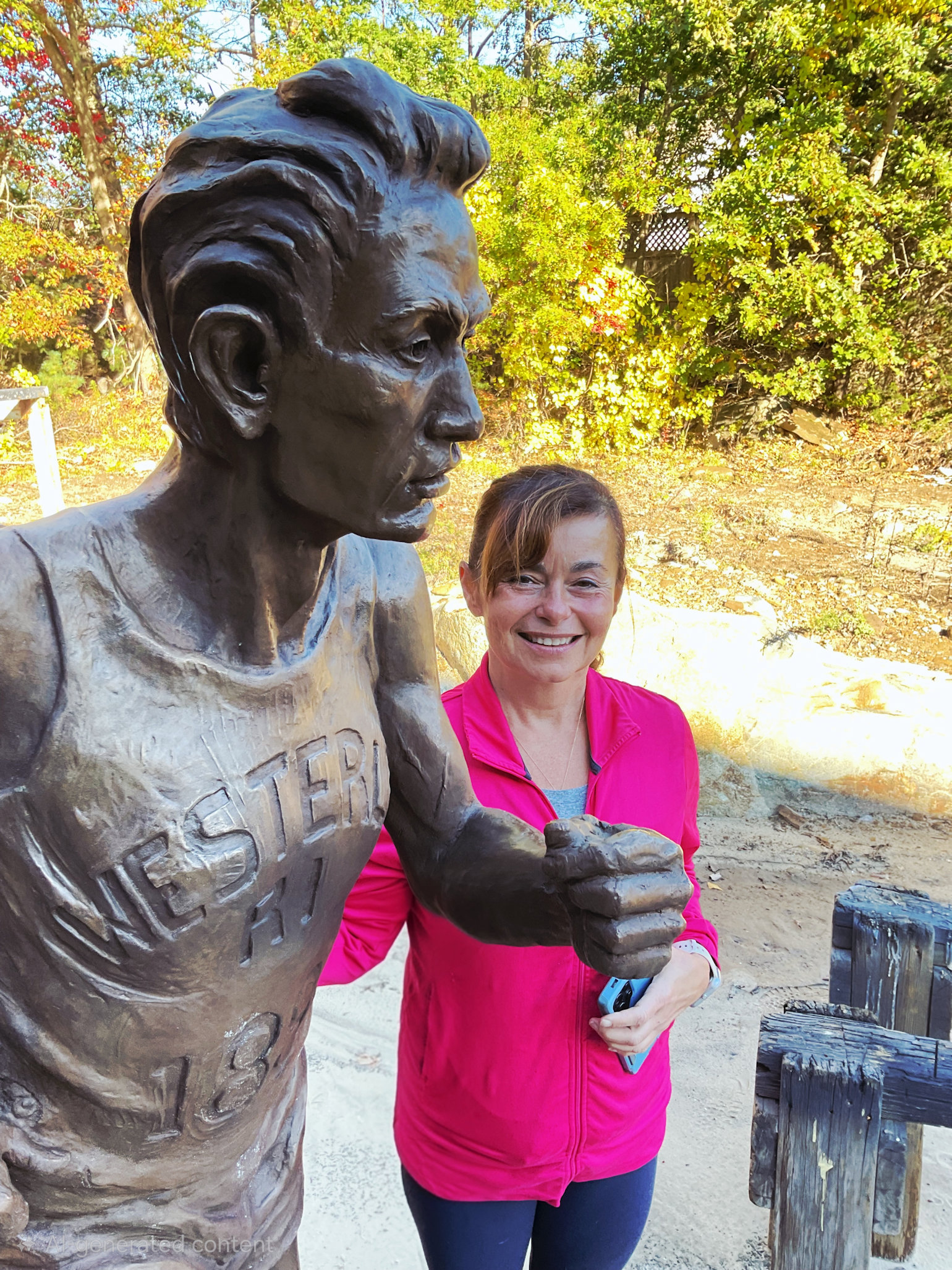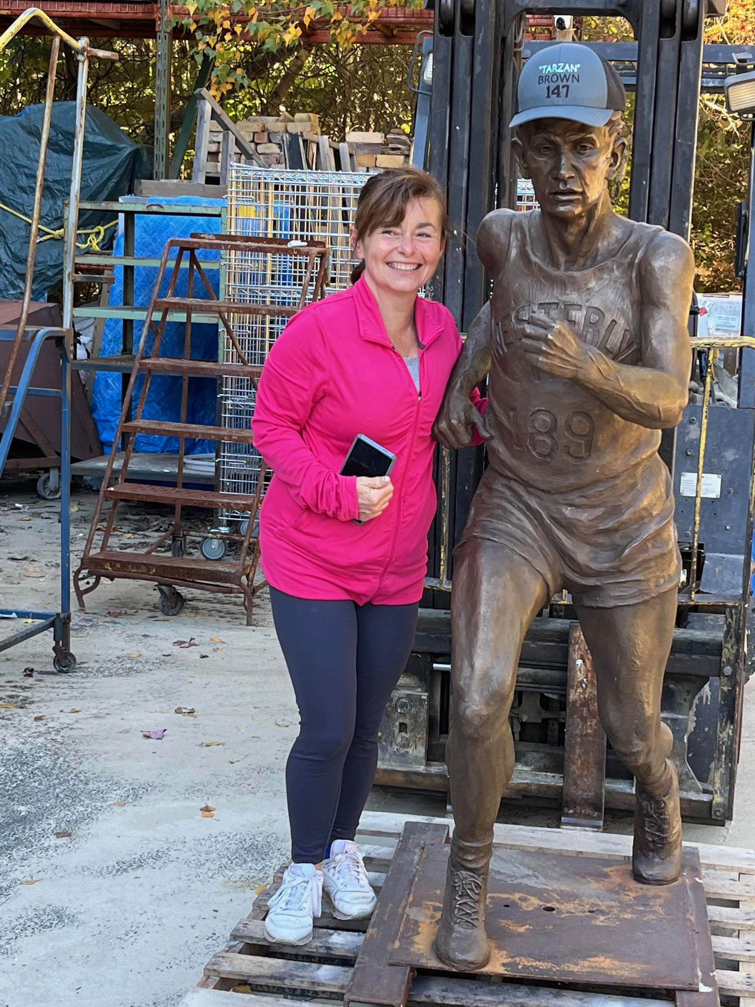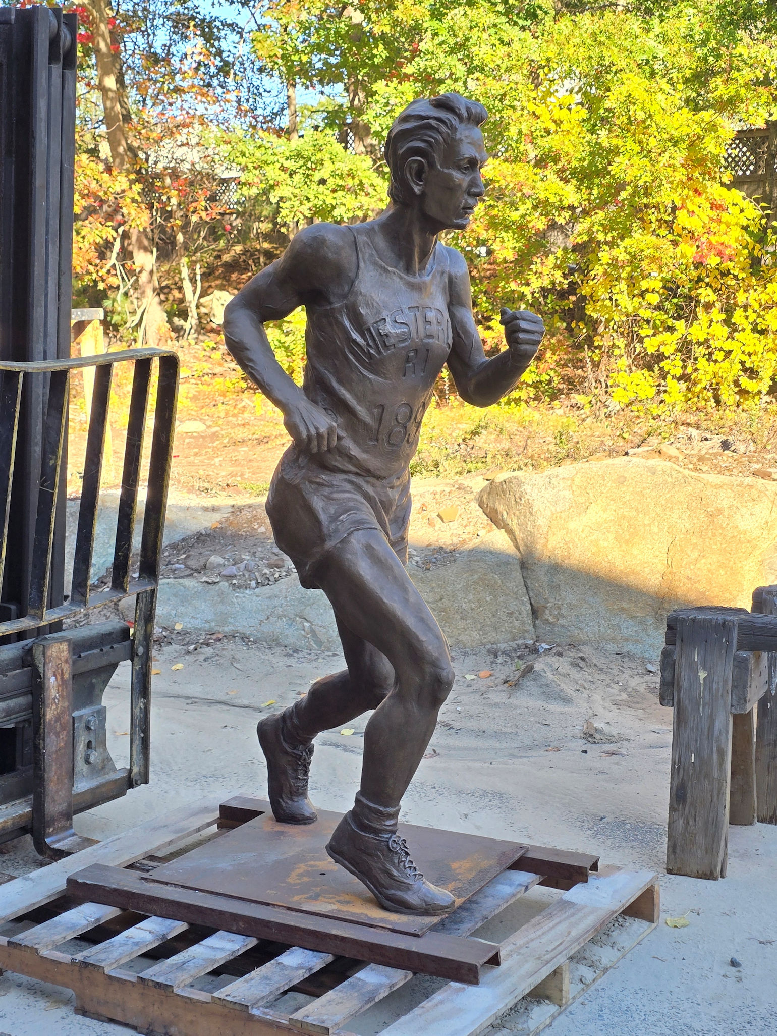 This art piece commemorates Ellison "Tarzan" Brown, a two-time Boston Marathon champion