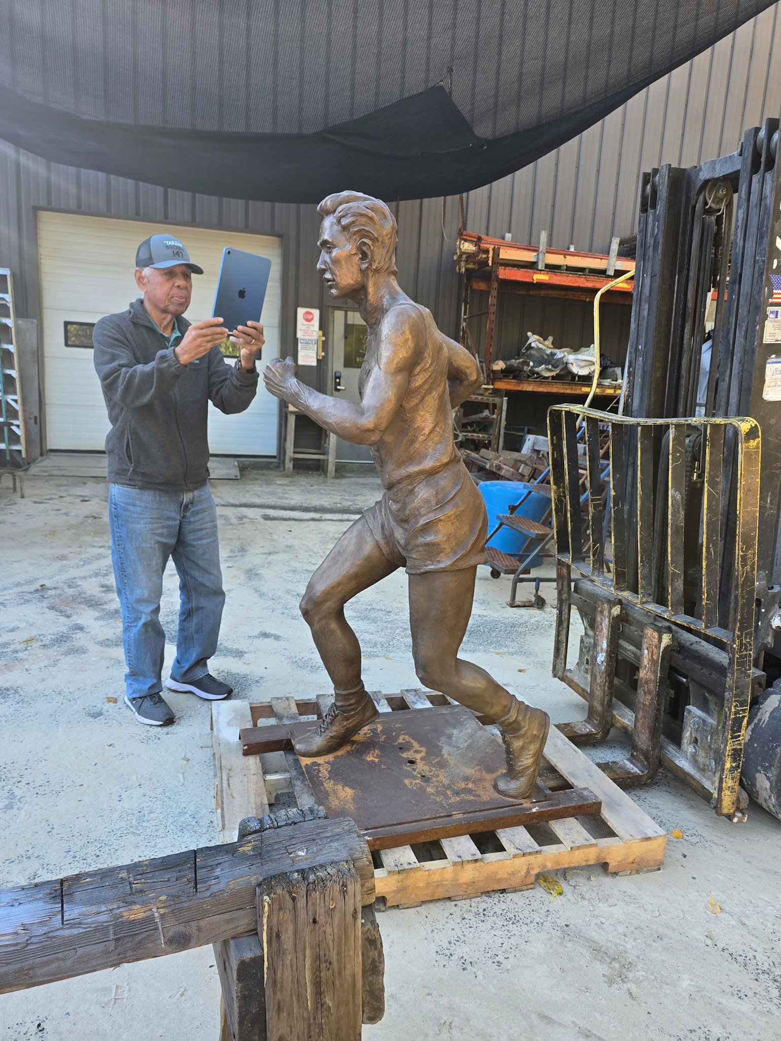 The sculpture was first created in a smaller clay model, allowing me to refine the pose and details. From there, it was scaled up and cast in bronze, a durable and timeless material that will stand for generations. This project was a true collaboration, and I am honored to have been entrusted with bringing this important story to life in bronze.