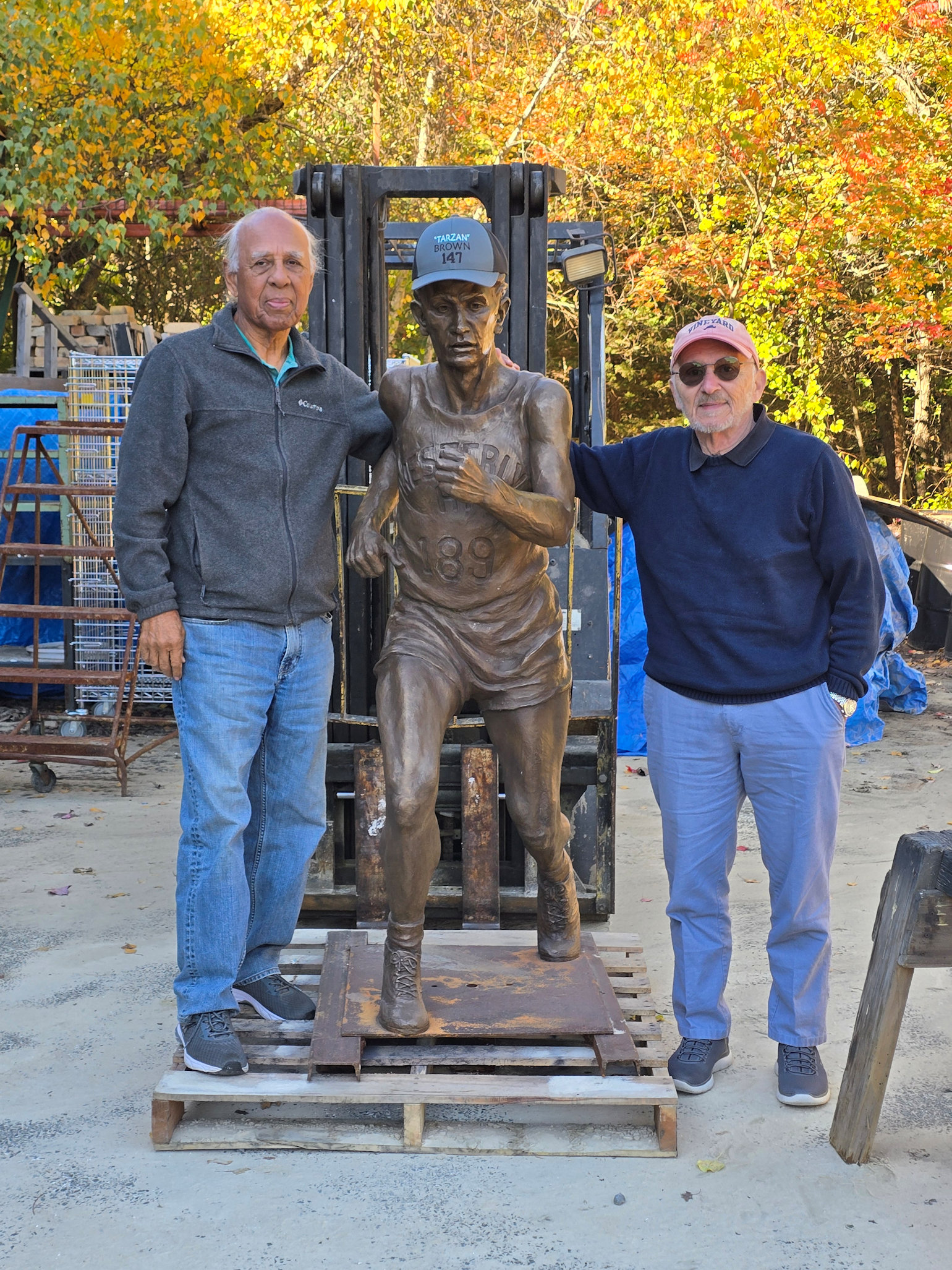 As the sculptor, my goal was to capture Tarzan Brown's energy and spirit. I wanted to create a work that felt dynamic and alive, much like Brown himself. The sculpture depicts a moment of powerful movement, with his form and the fabric around him showing the intensity of his running.